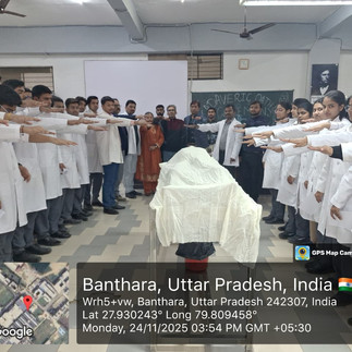The Department of Anatomy, Varun Arjun Medical College & Rohilkhand Hospital, conducted a dignified Cadaveric Oath Ceremony for the 1st MBBS Batch of 2025-2026 on 24 November 2025 in the Dissection Hall.
