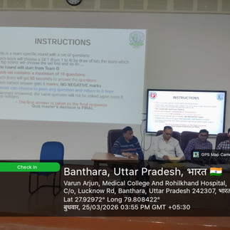 On March 25, 2026, the Community Medicine Department at Varun Arjun Medical College and Rohilkhand Hospital, under Varun Arjun University in Banthra-Shahjahanpur, hosted the prestigious ‘IAPSM World Health Day Quiz – College Round Final‘ organized by the Indian Association of Preventive and Social Medicine (Uttar Pradesh-Uttarakhand State Branch). Guided by Dr. Dharmendra Kumar Gupta, with key support from Professor Dr. Purva Sur and faculty like Dr. Intkhhab Alam, Dr. Ajay Agarwal, Dr. Shivani Gupta, and Dr. Aditya Prakash Singh, the event aimed to enhance MBBS students’ awareness of public health, national health programs, epidemiology, infectious/non-infectious diseases, and global health issues through a scientifically structured quiz format emphasizing quick thinking, teamwork, and decision-making.